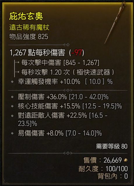標題[競標]D4 S1魔仗 頂強度825 易傷/核心/遠距/壓制