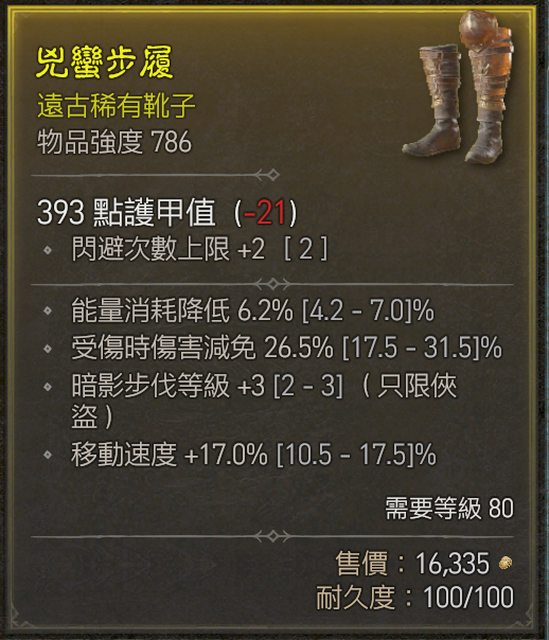 標題[競標] D4俠盜閃躲鞋 移速/減消耗/受傷減/暗影步