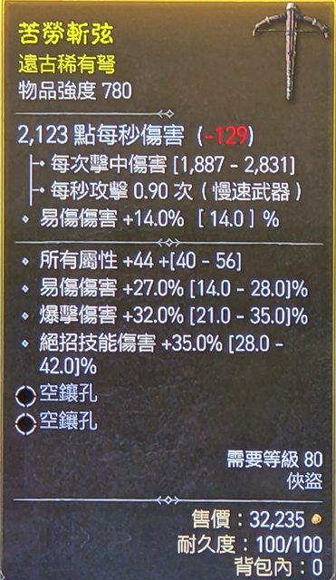 標題[競標] D4賽季 近頂易傷 爆傷 弩