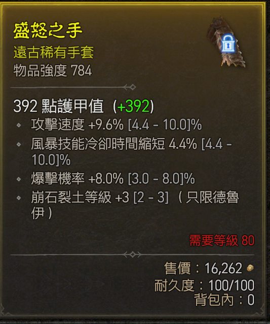 標題[競標] D4S1德魯伊手套 頂爆 近頂攻速