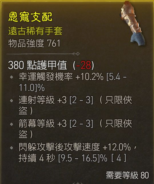 標題[競標] D4 S1 連射+3箭幕+3 幸運 閃躲+攻速手套