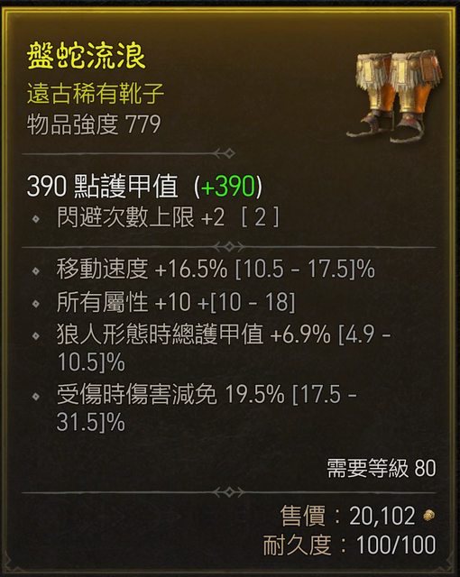 標題[競標] D4 S1 鞋子 閃2/近頂移速/狼甲/受傷減
