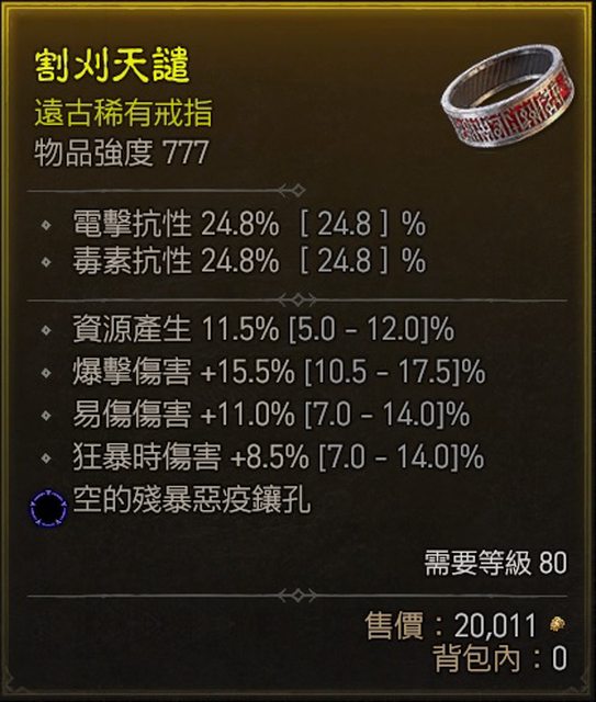 標題[競標] D4 S1 戒指 近頂資源 高爆傷 高易傷 狂暴