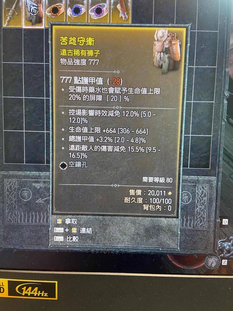 標題[競標] D4賽季減傷頂生命屏障褲