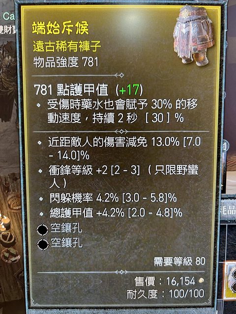 標題[競標] D4 S1 近減傷閃避護甲褲子