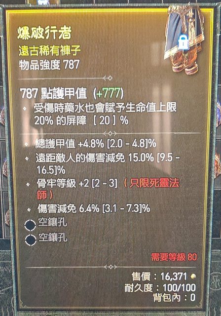 標題[競標] D4 賽季 四防褲 頂護甲 高遠減 傷減
