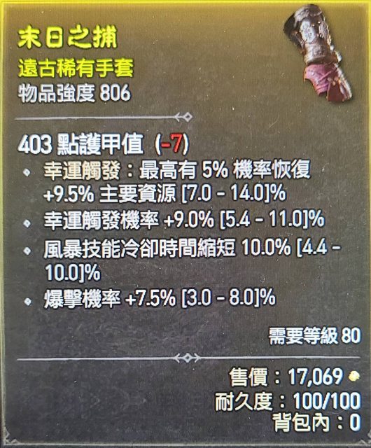標題[競標] D4 S1 手套 近頂爆率 幸運 頂風暴冷卻