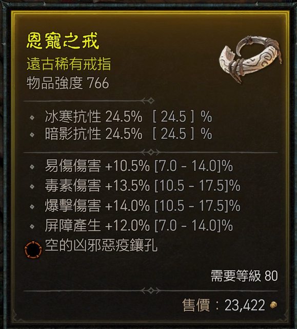 標題[競標] D4 S1 戒指 高Roll 易傷/爆傷/屏障 凶邪