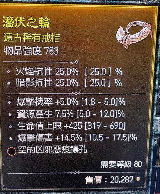 標題[競標] D4S1 頂爆率 爆傷資源生命 凶邪戒指