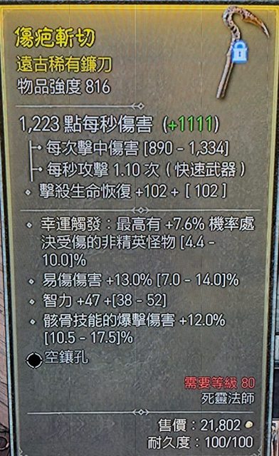 物 品:單手鐮816/易傷13% 智力47 駭骨爆12%