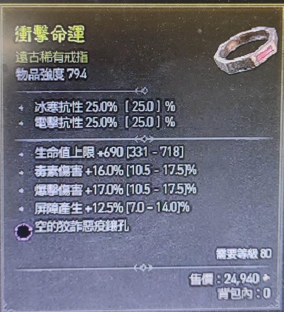 屏障 生命 爆傷高roll戒指