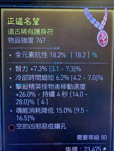 標題[競標] D4 賽季 死靈護身符 智力滿 高魂能降