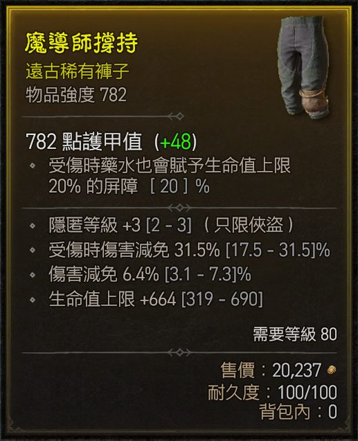 標題[競標] D4S1 減傷褲 生命+664/傷減31.5/全減6.4