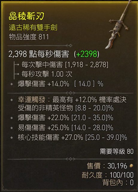 標題[競標] D4 S1 雙手劍 易傷/爆傷/核心傷