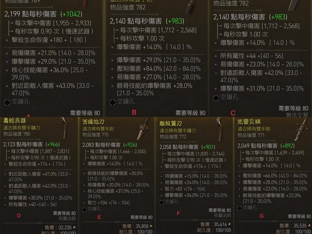 武器強度都沒超過800,