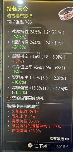 物 品: S1 橘孔 爆傷/爆率/資源產生/生命上限 戒指