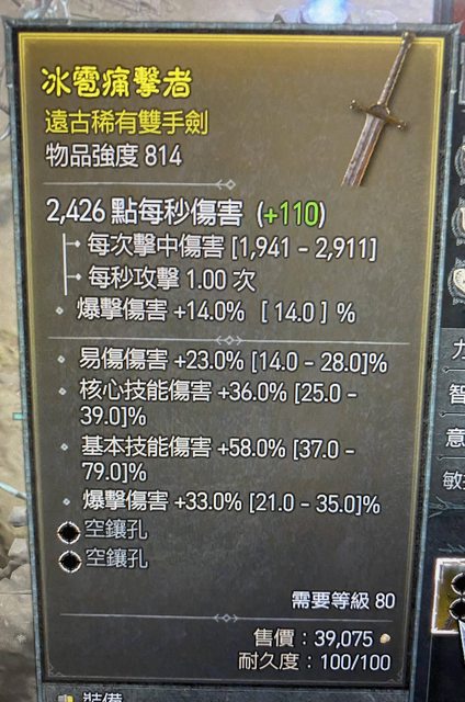 標題[競標] D4S1 814雙手劍 核心 爆傷 易傷