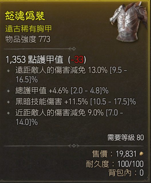 標題[競標] D4 S1 胸甲 遠減/近減/護甲