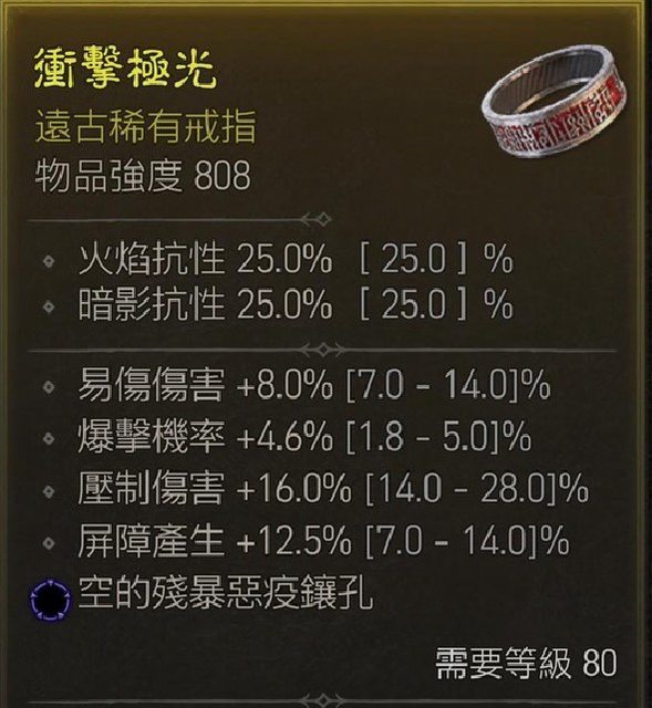 標題[競標] D4 S1 易傷/近頂暴率/近頂屏障 藍孔戒
