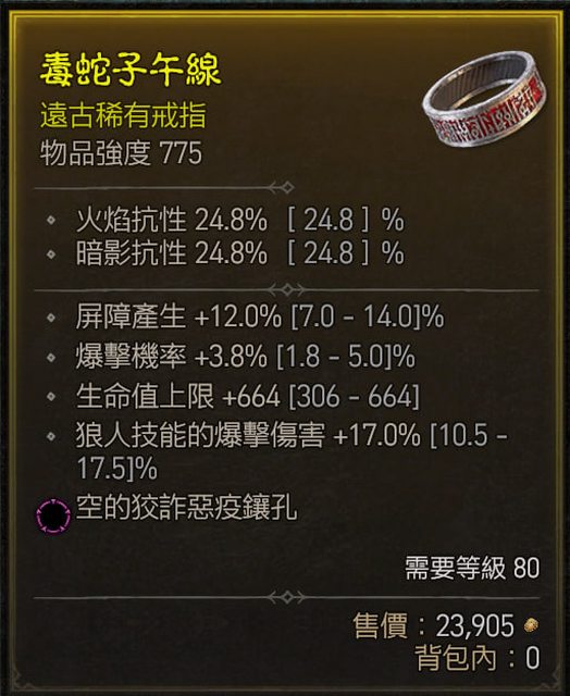 標題[競標] D4s1 炸盾戒指 頂生命 屏障 爆率