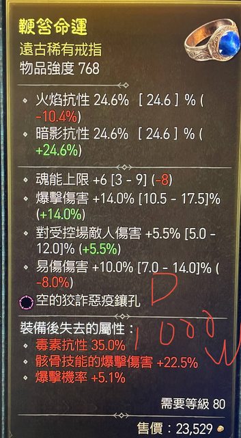 標題[交易] D4 S1 爆傷/易傷通用戒指 死靈項鍊(跑速