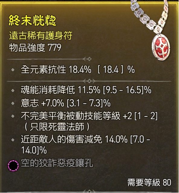 標題[競標] D4 S1 項鍊 頂近減傷/不完美/減耗/粉孔