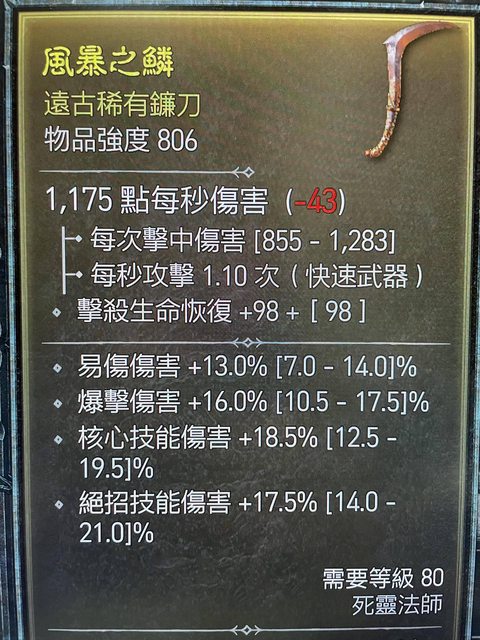 標題[競標] D4 S1 806單手鐮刀 近頂暴/易/核心傷