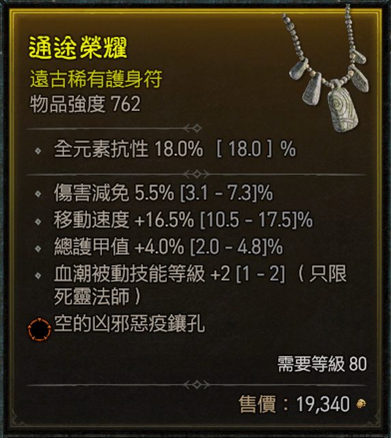 標題[競標] D4 死靈項鍊 近頂跑速/傷減/護甲/血潮+2