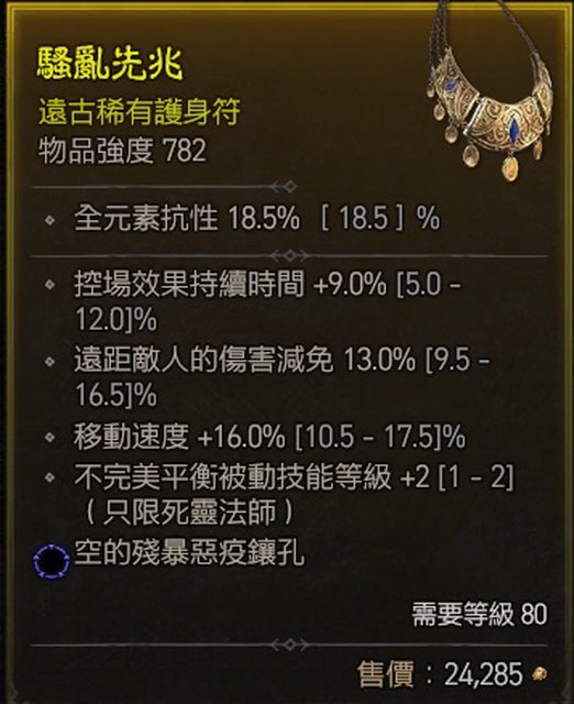 標題[競標] D4 S1 項鍊 不完美+2/近頂移速/遠減傷 藍