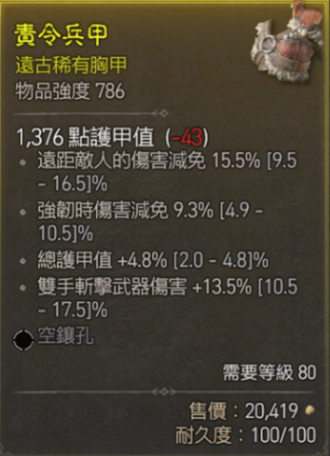 標題[競標] D4 S1 通用三頂胸甲 遠減/護甲/強減
