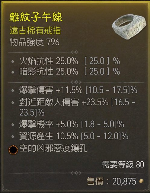 標題[競標] D4S1 橘孔戒指 頂爆率近傷/高資源/爆傷