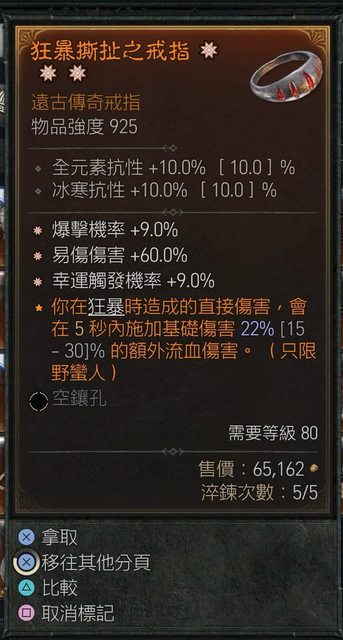 標題[競標] D4 s4 三太古戒指 爆率 易傷 幸運 冰抗