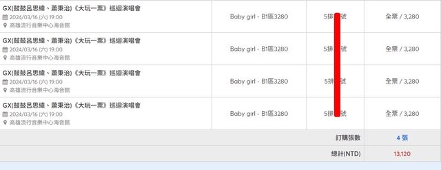 標題[售票] 【售】GX<大玩一票>B1五排*4