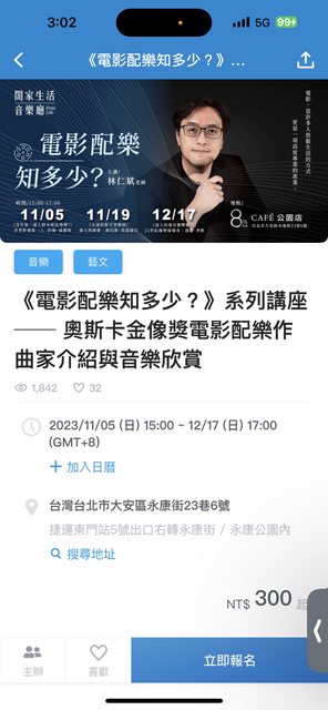 標題[贈送] 贈票-《電影配樂知多少?》系列講座 —奧