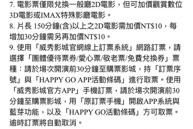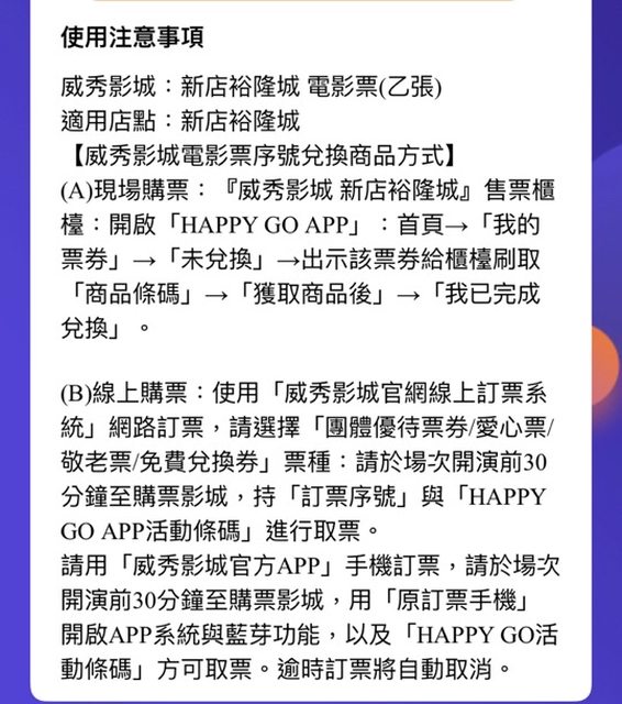 節目:新店裕隆城威秀電影票2張(12/31前兌換)