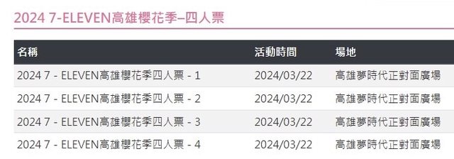 [售票] 【售】高雄櫻花季四人套票