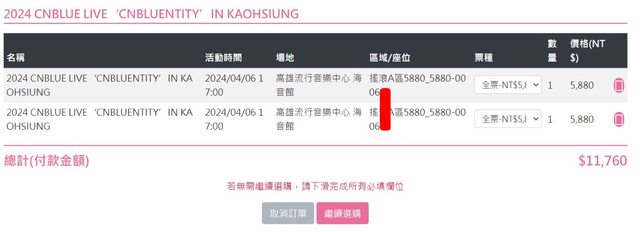 標題[售票] 【售】CNBLUE搖滾A區4張