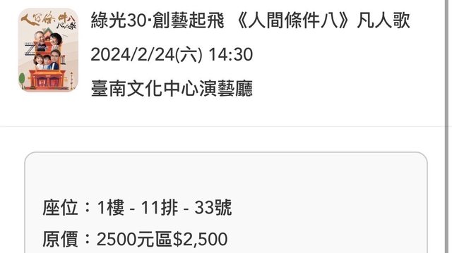 標題[降售]綠光劇團 2/24 人間條件八