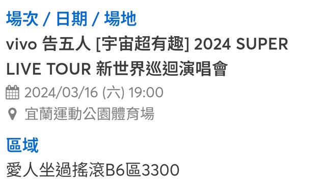 標題[售票]3/16告五人 [宇宙超有趣]B6連號兩