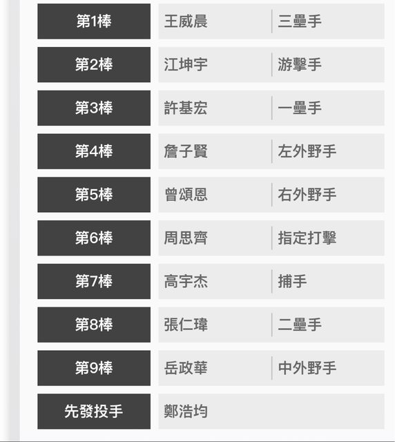 推 Ayanami5566: 我覺得前三棒 岳弟 阿坤 魚住 固定比較好 後面 08/04 18:33