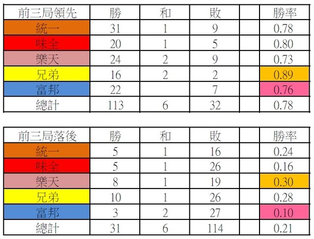 推 xylophone011: 結論,前三局領先勝率高達80%以上,代表領先時投手 08/18 12:13