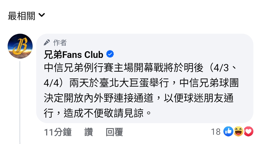 推 kevin19528: 明天應該是目前大巨蛋唯一擋內外野的場次吧(? 04/02 14:54