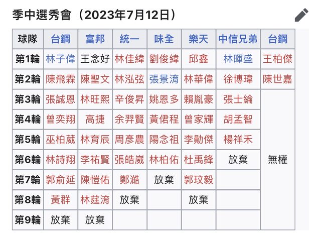推 pass9487: 投手選的有夠少 ,末段選秀的野手都有離開了,統一前面 04/07 01:03