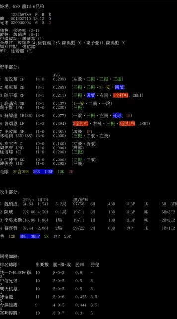 標題[情報] G30 龍13:6兄弟 全場數據box