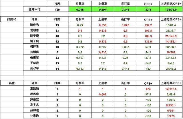 → rod007: OPS+ 82 只贏台鋼 04/28 19:59