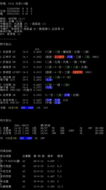 中信兄弟 43 22-0-21 0.512 6.5
