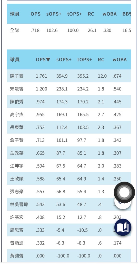 → ChenTzuHao: 平手OPS+140.2 06/27 23:12