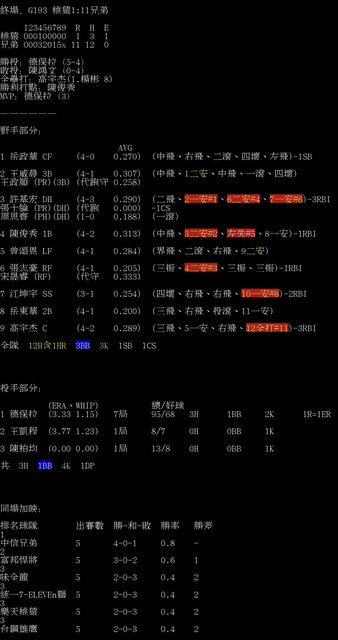 標題[情報] G193 桃猿1:11兄弟 全場數據box