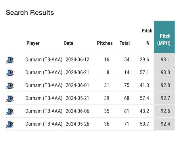 今年在3A的直球均速 92.7 英里(