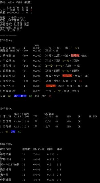 標題[情報] G220 兄弟3:1桃猿 全場數據box